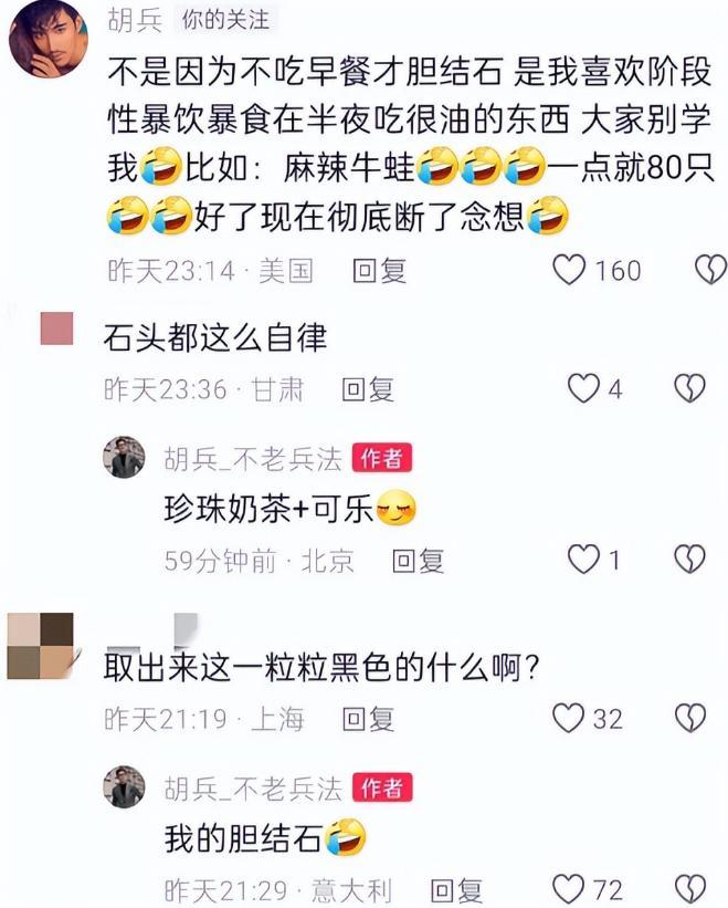 “不是因为不吃早餐才胆结石,是我喜欢阶段性暴饮暴食在半夜吃很油的东西”。
