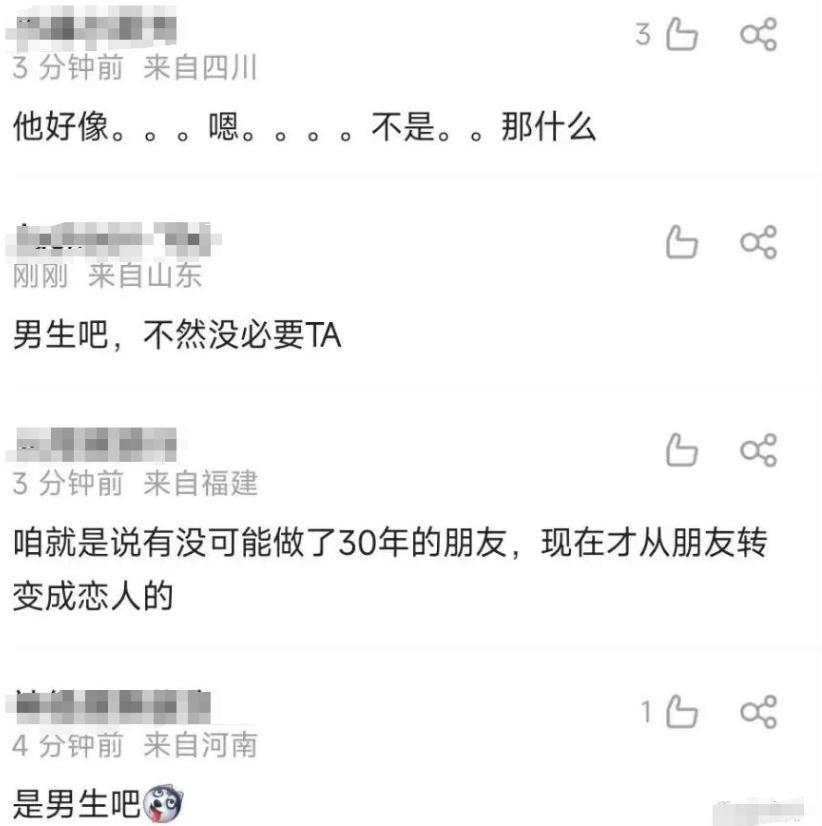 直到23年时,胡先生发了一个社交平台,说和陪自己30年的“TA”结婚了。