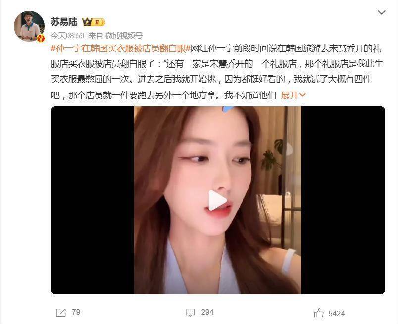颜值网红孙一宁在直播中吐槽自己在韩国宋慧乔开的礼服店遭遇“史上最憋屈购物经历”,直接点燃了网友们的怒火。