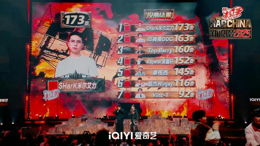8月24日,由爱奇艺出品,统一冰红茶独家冠名的s 级自制综艺华语青年说唱音乐真人秀《新说唱2025》迎来收官之战,经过兄弟帮唱赛、七强争霸赛、冠军争夺赛三轮精彩角逐,最终SHarK米尔艾力荣膺《新说唱2025》年度总冠军,万妮达Vinida Weng与时代少年团严浩翔带领的Underdog成为冠军战队,邓典果DDG与TopBarry分别获得2025年度亚军与2025年度季军!