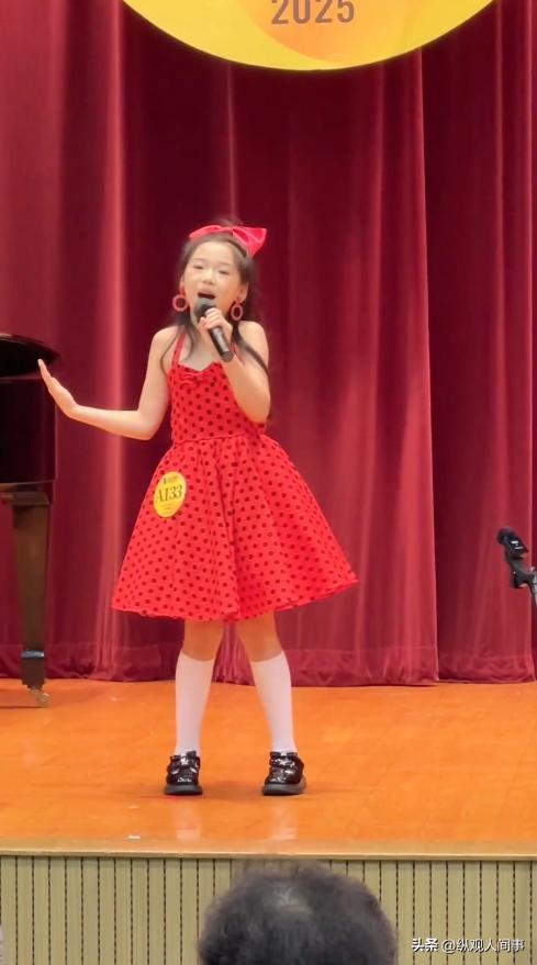 而就在前段时间,她还前往香港参加演出,在舞台上,她大声的唱着英文歌,跳着舞,表现的非常自然成熟,就像个小大人一样。
