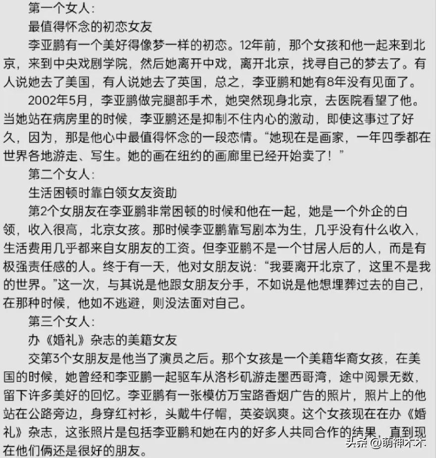 回顾李亚鹏的感情史,网友吐槽起来毫不客气,直言对他的前任来说,他不是前夫是“前科”,堪称女神们不愿提起的案底。