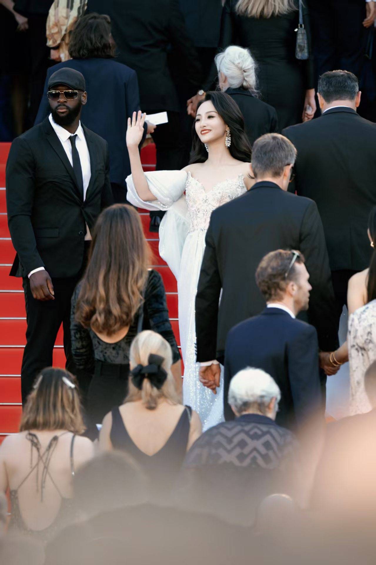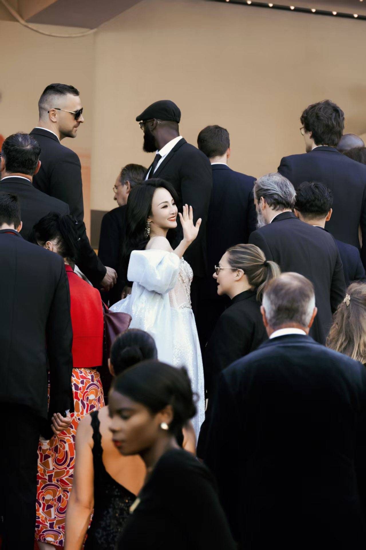 值得注意的是,项亮月的两次红毯造型均巧妙融合东方元素——开幕式JoliPoli礼服以金凤凰设计呈现,此次高定则借鉴东方美学的留白意境。美国《Vogue》官网撰文称:“她将文化自信转化为视觉语言,每一帧画面都是中国美学的国际传播课。”而保镖团队的加入,一时间成为热门搜索的话题#项亮月戛纳带保镖走红毯#此次亮相更被业界解读为国际影坛对中国电影人实力认可的重要体现。
