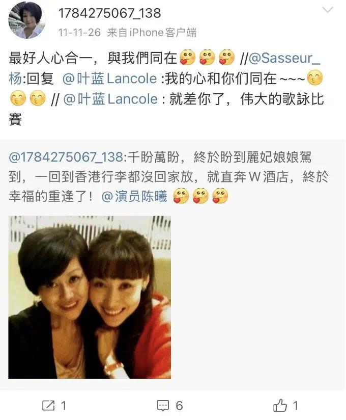 叶蓝的朋友里,也有不少人认识陈祉希。其中,互动最多的,是香港金融圈人士尹红霞以及砂之船集团董事杨雪。