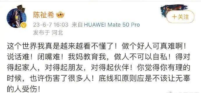 后来,则因为与王一博、于适等顶流的合作,陈祉希又遭遇到了很多麻烦。