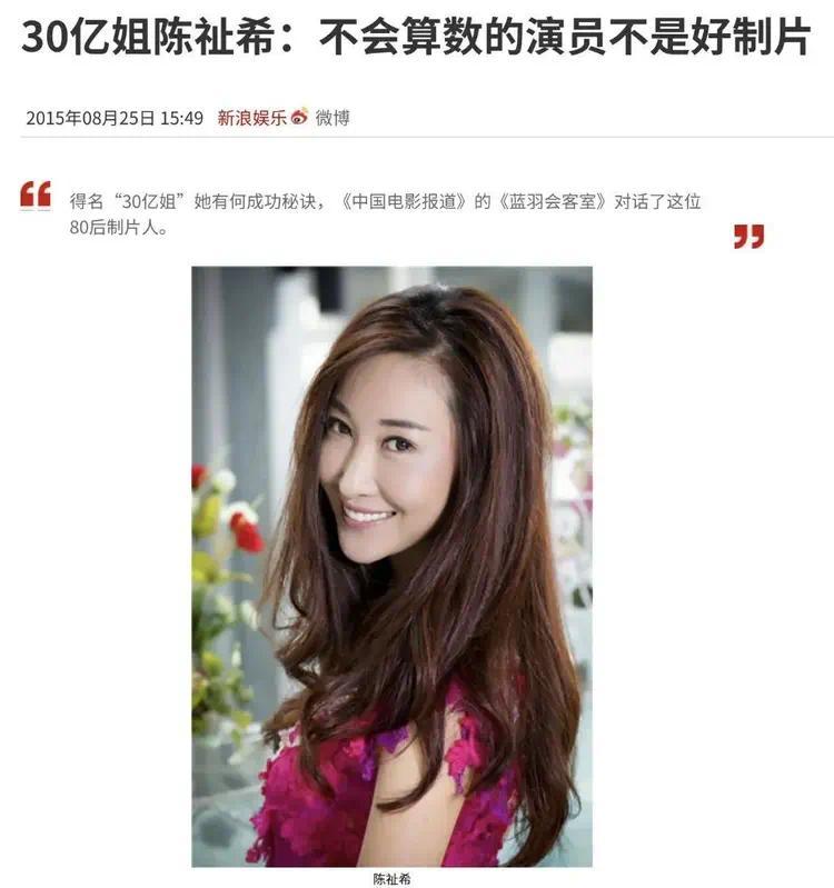 陈祉希是国内影视公司中少有的女性掌舵人。在讲她的故事之前,我们大致科普一下她的履历,感受一下她的赚钱能力: