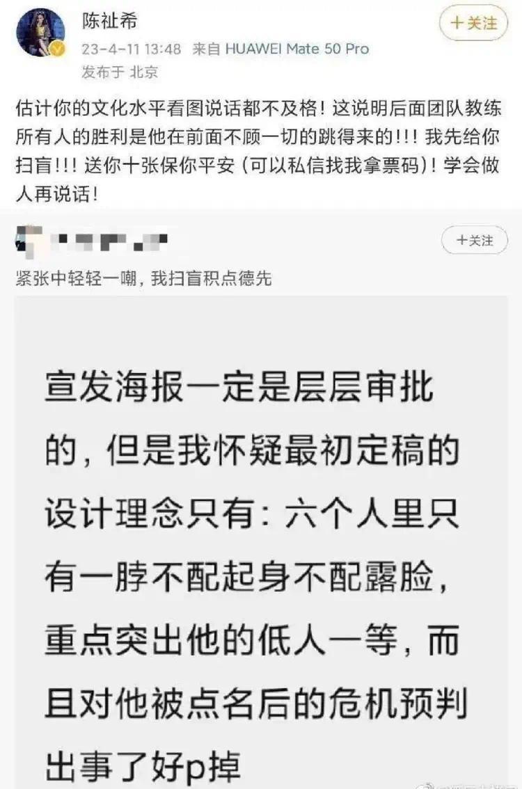 大批粉丝冲到陈祉希微博上攻击,说她偏心,陈祉希出来怼网友说你们文化水平太低。
