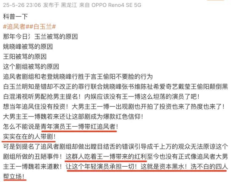 2024年,电视剧《追风者》在报名白玉兰奖项时,为王阳提报了“最佳男主”的头衔,引发王一博粉丝的强烈不满。