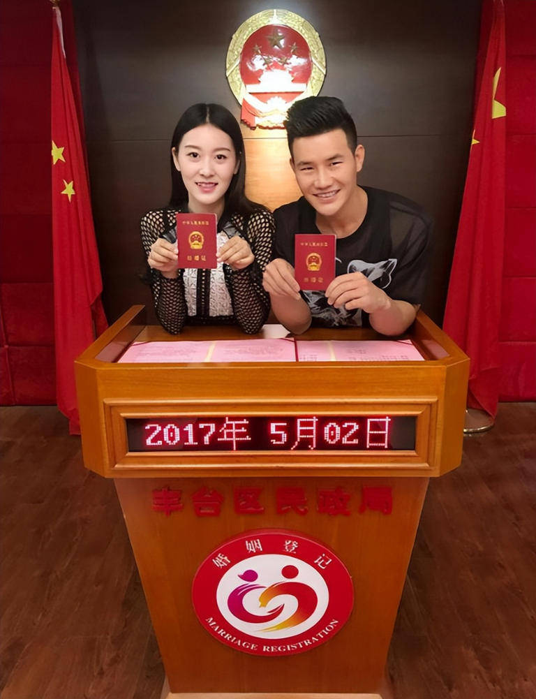 在他感到沮丧时,他遇到了现在的妻子,两人在17年领证结婚,女方是圈外人,长的很漂亮。