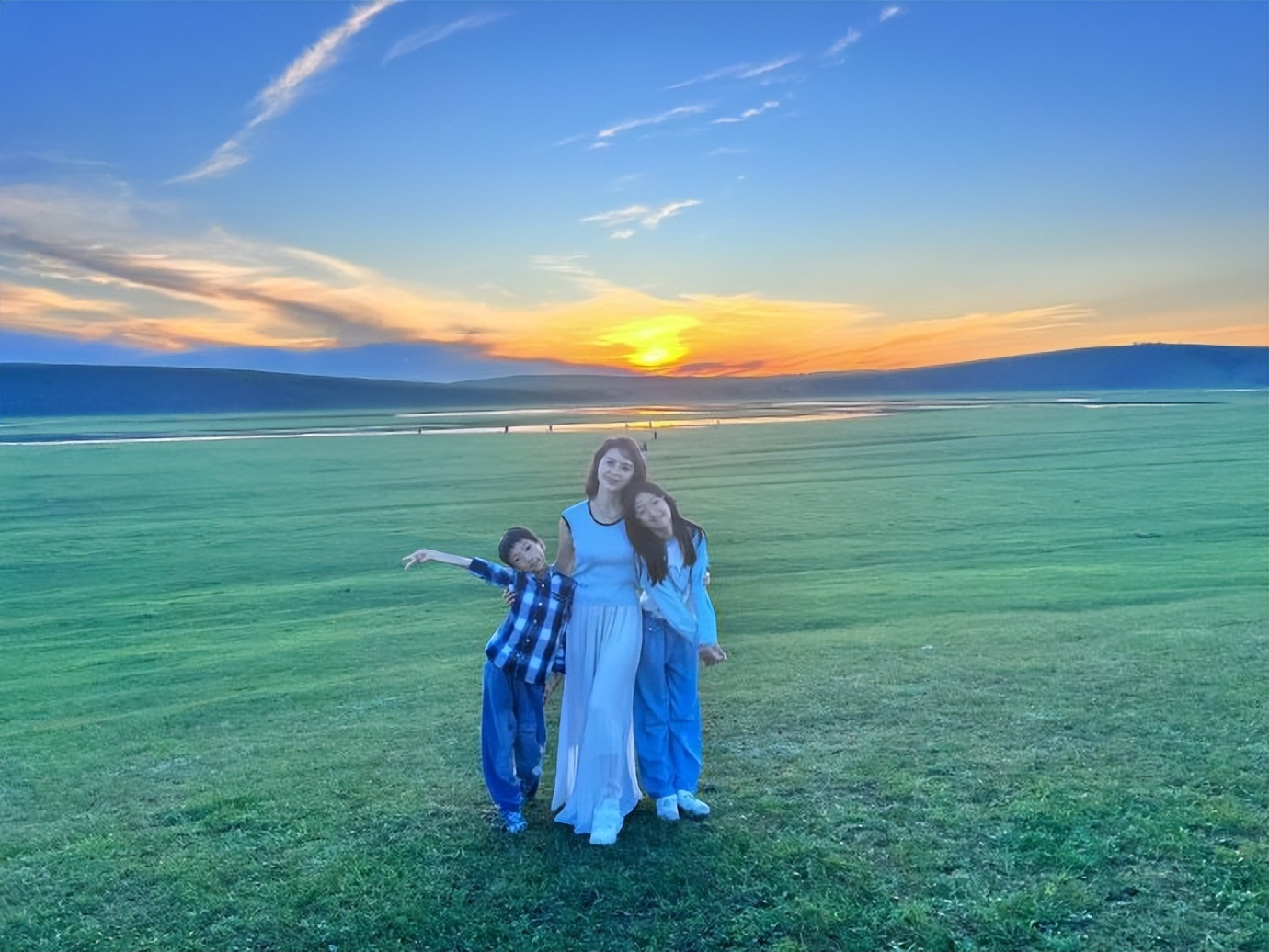 金巧巧搂着儿女站在大草原啥拍下了温馨又唯美的一幕,母子母女三人时而看着镜头灿笑,时而又背对镜头看夕阳,每一帧都唯美到不行,太有爱了。