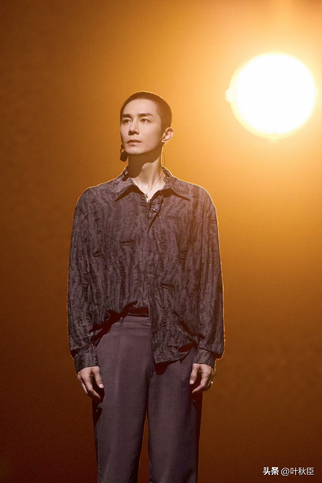 剃掉长发留起寸头,将整个面部五官暴露出来,极致强化了骨骼感,极简硬朗像变了个人。