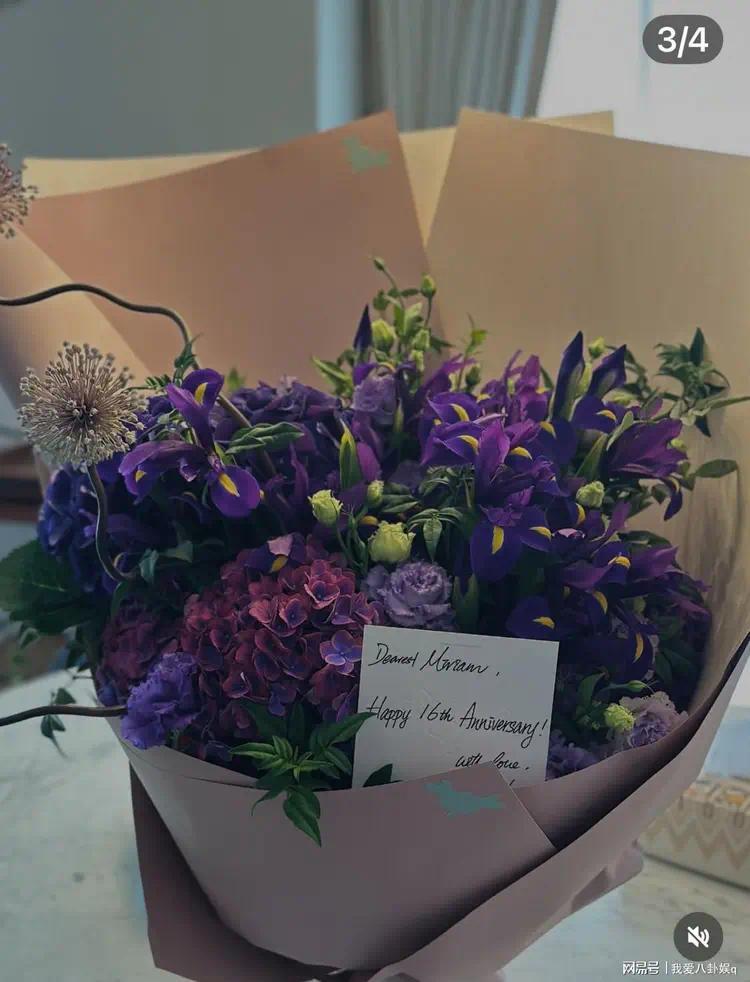 吃完火锅,丁子高仍不忘搞一搞浪漫,特别给老婆订了一捧紫罗兰花束,紫罗兰寓意深远,常被视为永恒的美与爱的象征,丁子高此举无疑是向老婆表达深深的爱意和承诺。