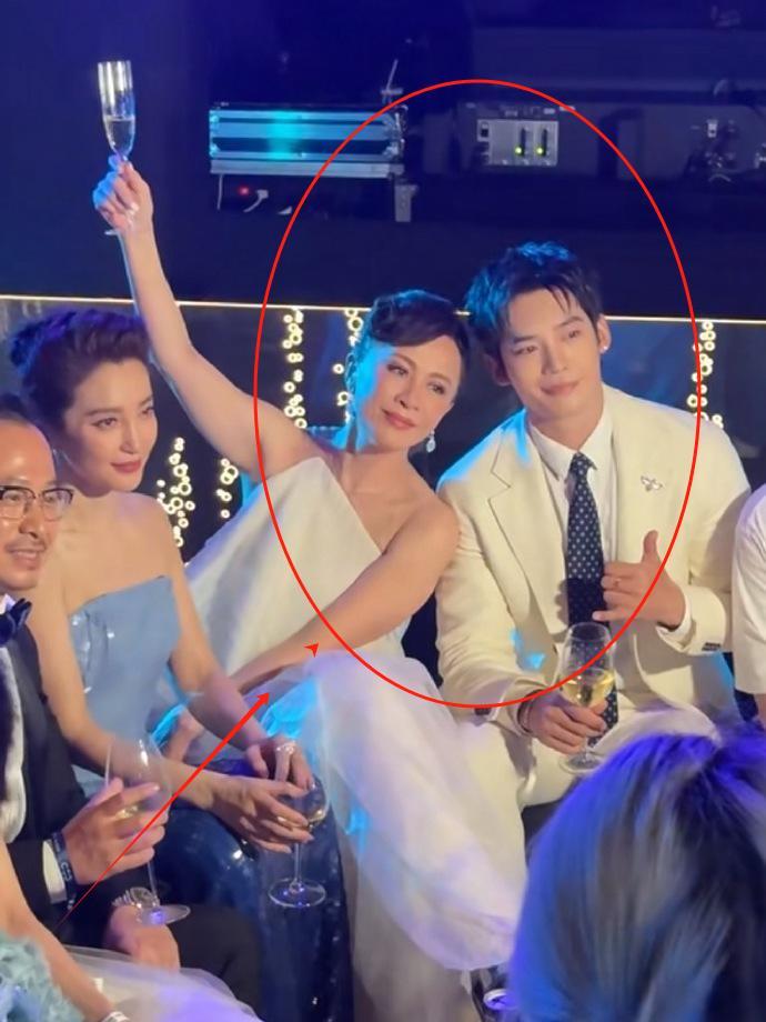红毯结束后,参加晚宴的时候,刘嘉玲还跟当红小生于适留了一张合影。