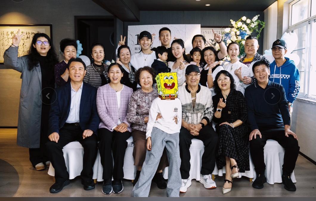 前段时间黄晓明表弟家孩子周岁宴,baby没去,但让人送了个金手镯,包装盒上写着“小海绵送”。