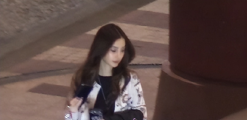 鼻姐当天穿了一件白色的外衣,只不过因为照片太过模糊,实在是看不清她手上拎着的是包还是衣服。
