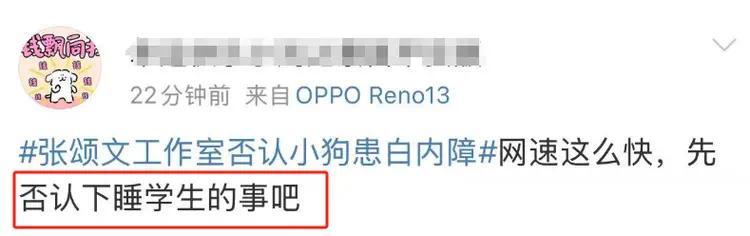 2月12号,网传有消息称:张颂文的小狗小白患上了白内障。
