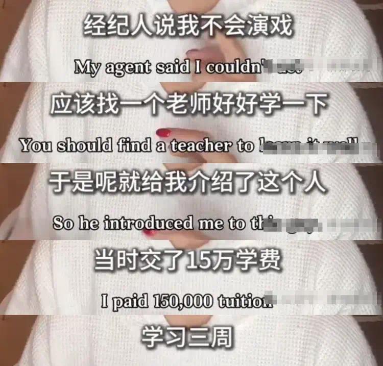 说自己在在13年前支付了15万元学费跟随张颂文学表演,但期间却遭受了他的欺骗和虐待。