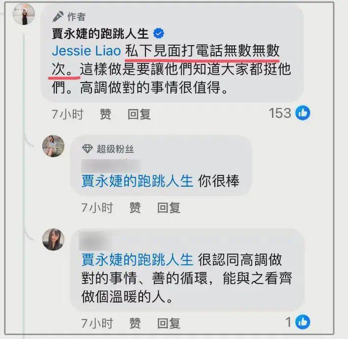 有网友质疑贾永婕如果真的关心S家,私下打电话关心比在网上发布言论引起争议好得多。对此,贾永婕表示自己私下和S家见面、打电话无数次了。之所以要坚持在网上发声,是想让所有人都知道自己力挺她们。贾永婕还认为“高调做对的事情很值得”!
