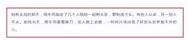 可这时的周冬雨却没有半点要共情,她的意思就是让她在这件事情上做出退步,最后的结果就是她真的把头发给剃掉了。