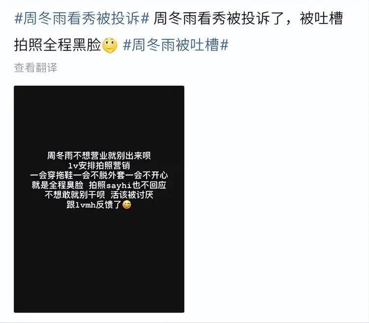 而周冬雨却完全没有给这名女子任何的脸色,这也让该女子忍无可忍,直接就在国外的社交媒体对她进行吐槽,并且直接把她的名字都甩了出来。