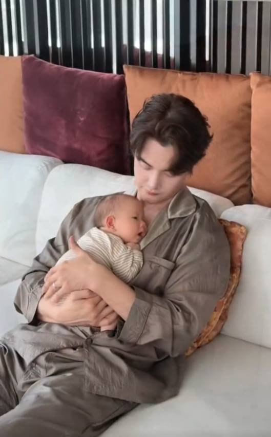 5月15日,张檬于个人社交平台发布短视频,产后首次曝光了儿子的正面模样。画面里,小五身着睡衣坐在沙发上,双手托抱着孩子,时而轻捏儿子的小脚丫,时而轻拍其后背安抚哄睡,尽显满满父爱。