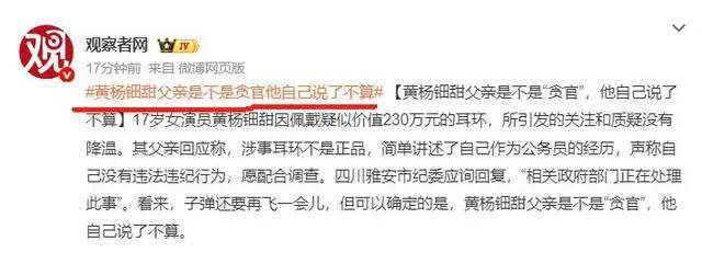 观察者网发文《黄杨钿甜父亲是不是贪官,他自己说了不算!》,让舆情持续升温。