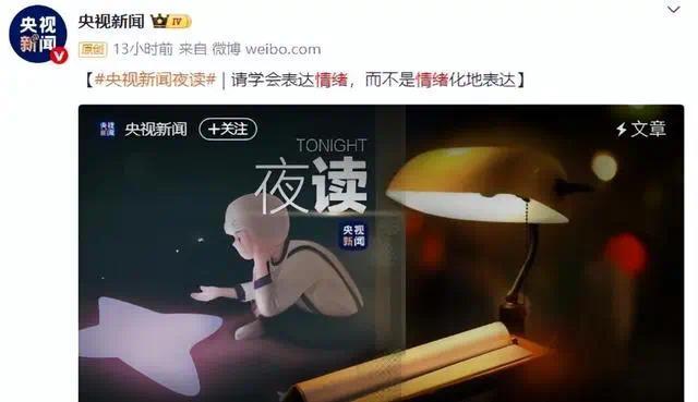 更让人抓马是,在她发文后不久,央视又发了一篇文章,主题就是劝大伙要学会表达情绪。