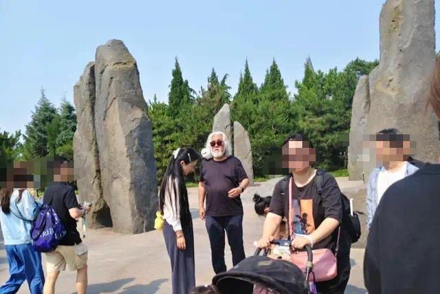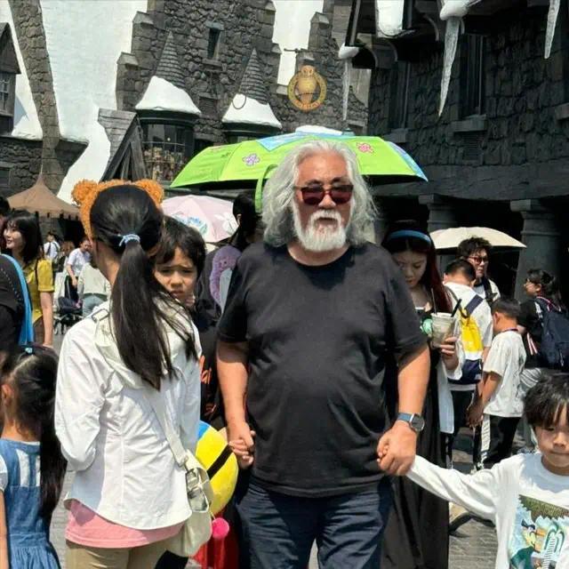 由于一头银发太显眼,导致很快就被路人们认了出来,于是张纪中全家出游的身影曝光了。