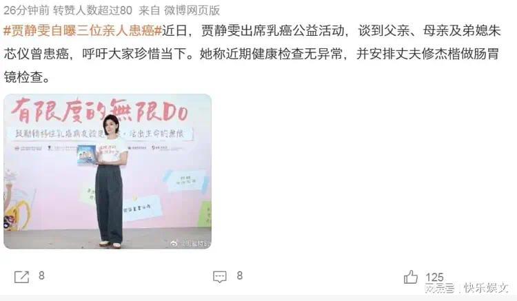 贾静雯的这次出席,不仅让我们看到了她作为一位优秀女演员的魅力和担当,更让我们感受到了她对健康、对生命的热爱和珍视。在这个快节奏的社会里,我们确实应该放慢脚步,关注自己和家人的健康,珍惜每一个当下。