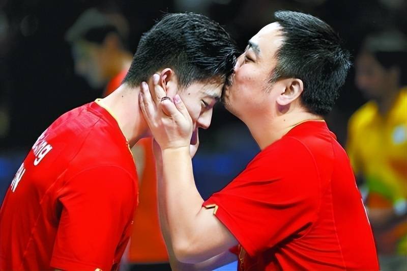 刘国梁之前就说过他鼓励队员的方式是通过亲吻队员的额头,这样亲密的举动更能表现出他对成员的爱。